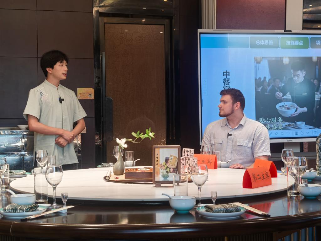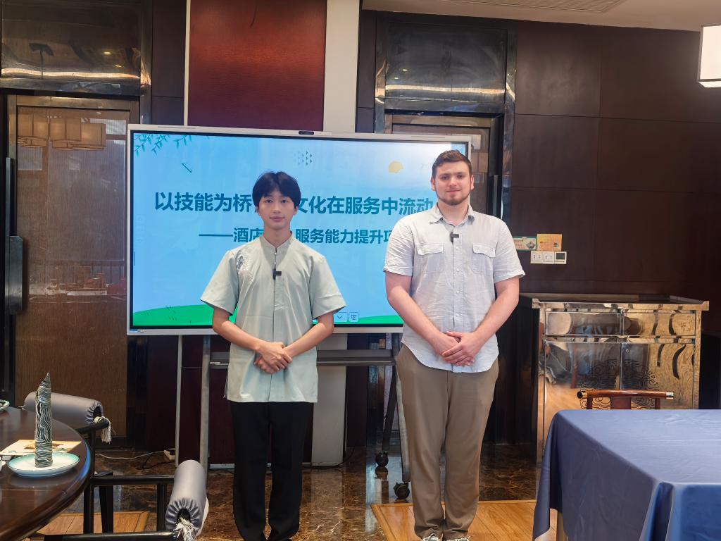 本次比赛参赛项目以"以技能为桥,让文化在服务中流动"为主题,通过聚焦中西餐服务技能,打造了一个“技能为标、文化为媒、友谊为果”的创新合作平台。项目强调文化适应型服务能力的培养,推动两国青年技艺共进,并共同研究制定体现两国特色的服务标准手册。比赛过程中,中俄青年们携手并肩,不仅通过技能协作打破文化刻板印象、缔结可持续的校际交流机制,更化身民间外交使者,以专业技能讲述文化故事、用创新服务传递国家情谊,生动响应中俄文化年国家战略,真正实现民心相通。一张餐桌容纳两个文明的智慧,一次协作播撒万千友谊的种子,完美践行了“让每间房容纳整个世界”的服务哲学。