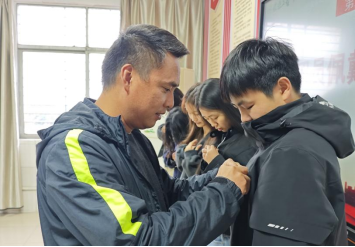 佩戴团徽环节,翁小川院长和张渝丹老师为15名新团员别上团徽,新团员们挺胸昂首,难掩自豪。随后,新团员代表郭天奇领誓,全体新团员举拳宣誓,铿锵誓言标志他们正式加入共青团。